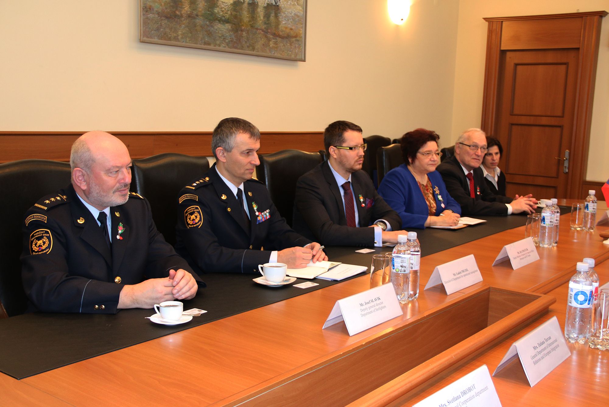 Delegația Cehă este formată din Ambasadorul Republicii Cehe în RM, excelența Sa, Jaromir Kvapil, Șef adjunct al Direcției generale, Departamentul de pompieri al MAI al Republicii Cehă, Josef Slavik și directorul Deprtamentului management operațional, colonel, Josef Slavik.