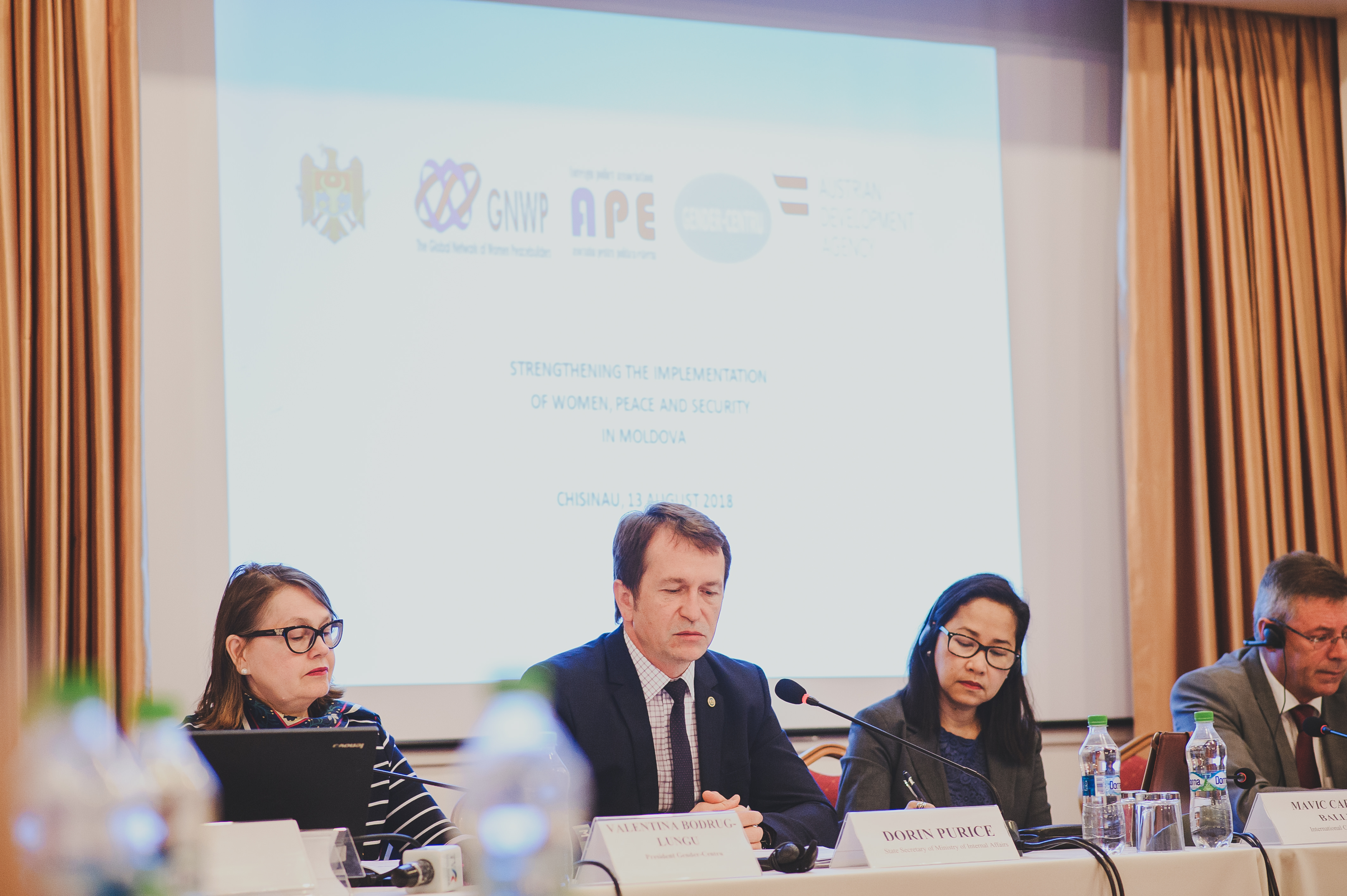 La eveniment au fost prezenți organizatorii seminarului din cadrul ,,The global Network of Wemen Peacebuilders (GNWP ), Gender Centru, Asociației pentru politică externă din Republica Moldova în parteneriat cu biroul Politici de Reintegrare al Cancelariei de Stat și Agenției Austriace pentru dezvoltare.