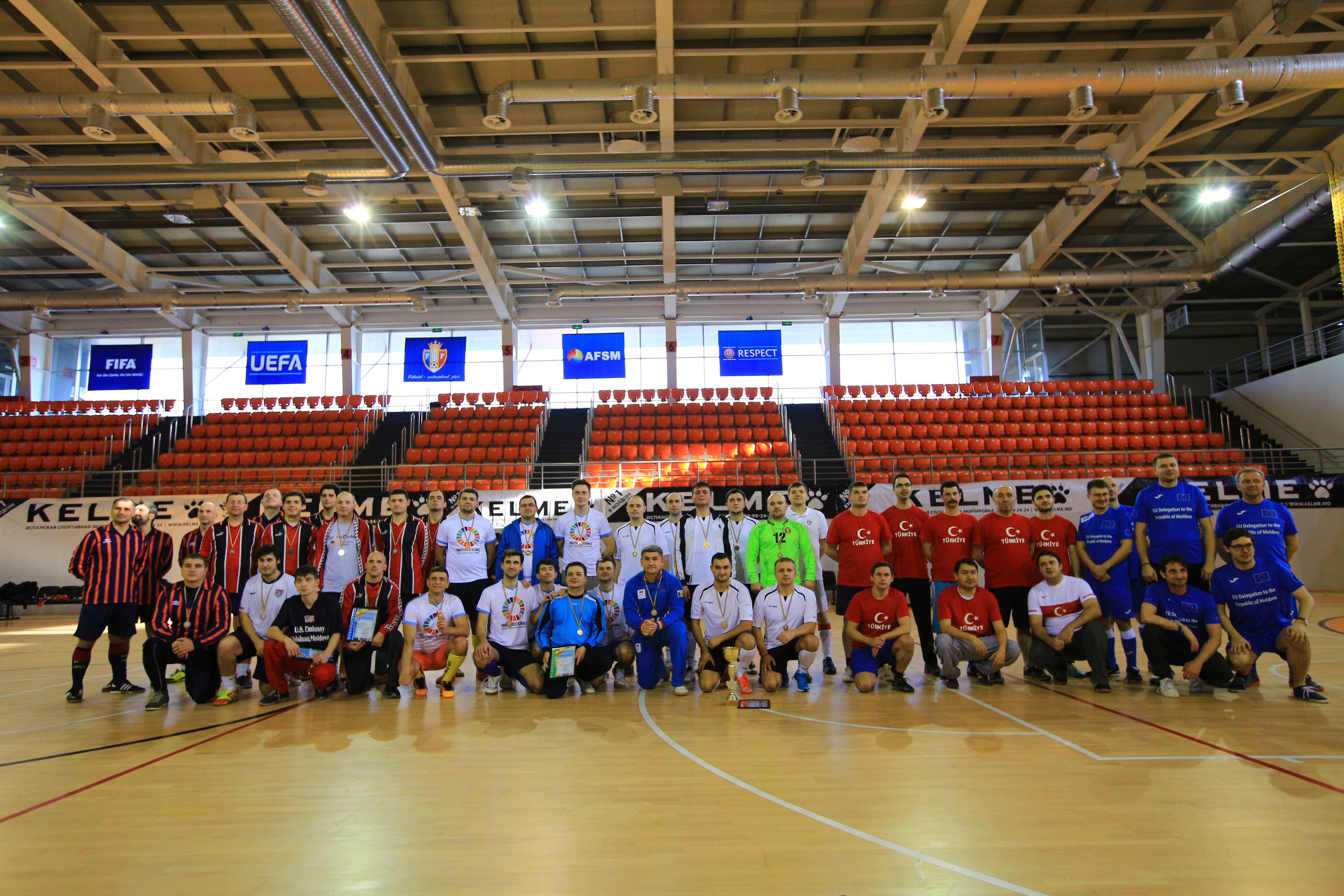 La meci au jucat echipele formate din reprezentanții Delegației UE în Republica Moldova, cei ai Ambasadelor SUA, cea a Marii Britanii, Turcia, Cehia, Slovacia, precum și reprezentanții de la PNUD.