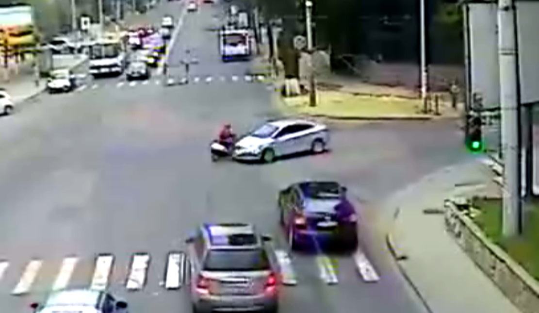 10 Iulie 2014 Conducătorul unei motorete fără numere de înmatriculare s-a ales cu o comoție cerebrală în urma impactului cu un automobil de model Hyundai.Incidentul a avut loc în capitală, la intersecţia bulevardului Ştefan cel Mare cu strada Mihai Viteazu și a fost înregistrat de camerele video ale Centrului Unic de Monitorizare și Control al Traficului al STI al MAI.Angajații Secției supraveghere transport a Direcției de Poliție mun. Chișinău, deplasându-se la fața locului, au constatat că, la volanul automobilului se află un bărbat în vârstă de 70 de ani, care nu a avut de suferit în urma impactului, conducătorul motoretei însă, un alt bărbat, în vârstă de 47 de ani, a avut nevoie de îngrijiri medicale, fiind transportat de urgență la spital. Circumstanțele accidentului se stabilesc.Accesați Video aici 10 iulie 2014