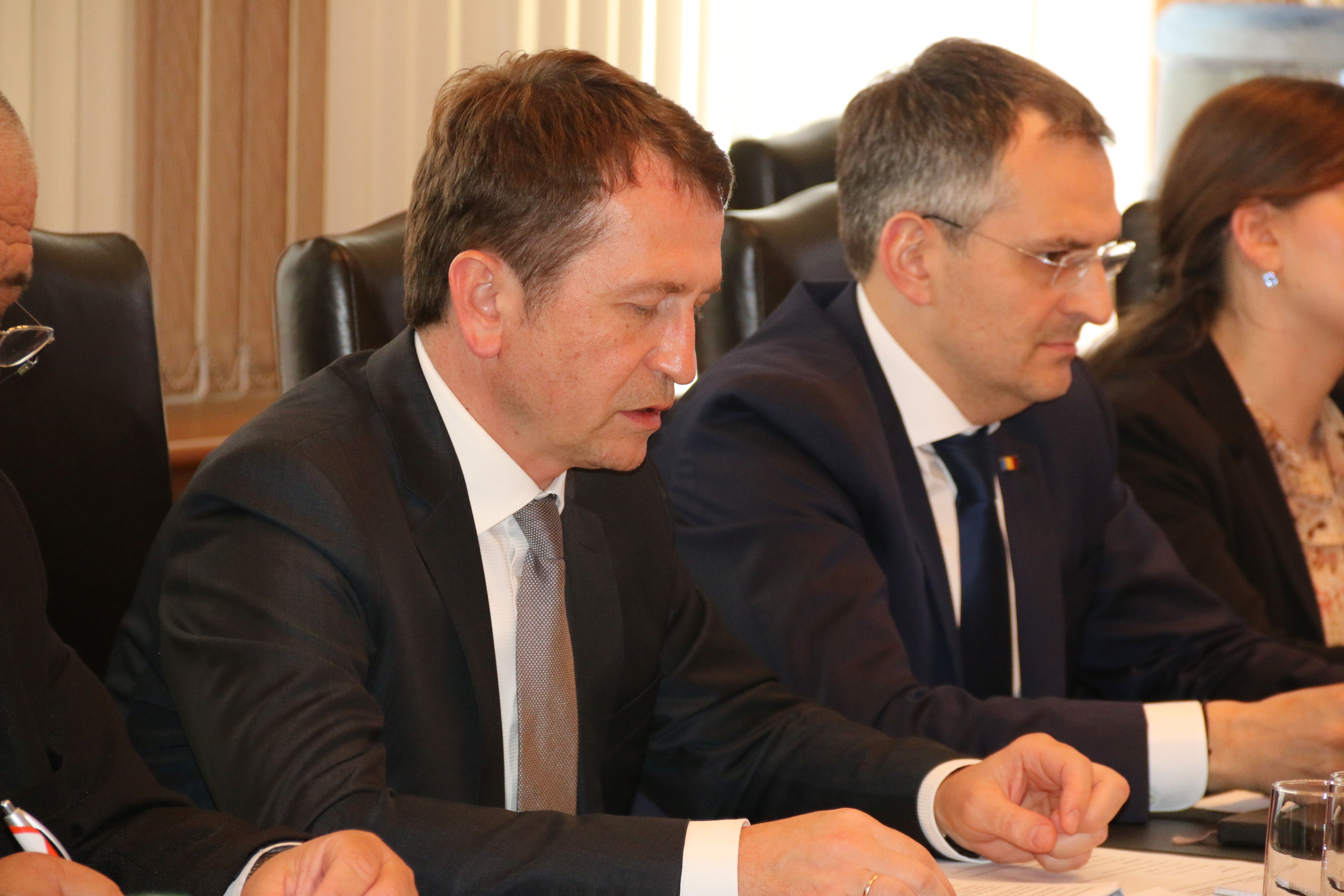 18 Mai 2016 La data de 17 mai 2016, a avut loc şedinţa trilaterală pe marginea creării Centrului Comun de Instruire pentru organele de aplicare a legii din Republica Moldova. În cadrul întrevederii au participat, viceministrul Dorin Purice împreună cu echipa şi reprezentanţii Ambasadei SUA Donald Carroll, Judith Campbell, Alecia Webb-Edgington , şi membrii delagaţiei UE în RM, Aneil Singh şi Victoria Neaga. MAI a prezentat o viziune preliminară privind crearea Centrului Comun de Instruire pentru organele de aplicare a legii din Republica Moldova, elaborată în baza unui studiu anterior realizat de Ambasada SUA în Republica Moldova. Această acţiune reprezintă o prioritate a Strategiei de Dezvoltare a Poliţiei pentru perioada 2016-2020 şi este inclusă în Suportul Bugetar al UE pentru Reforma Poliţiei (2017-2020), care este în proces de negociere. Viceministrul Dorin Purice a exprimat angajamentul MAI la realizarea acestui obiectiv ambiţios, menţionând că una din priorităţile de bază ale Ministerului constă în valorificarea resurselor umane şi investirea eforturilor pentru dezvoltarea profesională a personalului. Partenerii internaţionali au apreciat viziunea clară pe care o are MAI în privinţa creării Centrului, au venit cu propuneri de îmbunătăţire a conceptului şi şi-au reconfirmat suportul în procesul de implementare a acestuia. Centrul Comun de Instruire pentru Organele de aplicare a legii din Republica Moldova urmează să fie instituţia principală de pregătire a corpului de subofițeri, conform standardelor internaționale. Conducerea MAI a menţionat despre faptul că nu vor exista dublări de competenţe între Academia Ştefan cel Mare a MAI şi Centrul Comun de Instruire. Dimpotrivă, este prevăzut faptul că, pe viitor, instituţiile ar putea încheia acorduri de cooperare pentru a asigura dezvoltarea comună a procesului de instruire. Misiunea Centrului constă în asigurarea formării iniţiale şi continue pentru subofiţerii subdiviziunilor MAI, dar şi a altor autorităţi naţionale de aplicare a legii. Mai mult, Centrul va avea menirea să perfecţioneze cunoştinţele şi abilităţile angajaţilor din sistem şi va oferi posibilitatea organizării cursurilor de formare profesională realizate de traineri internaţionali.