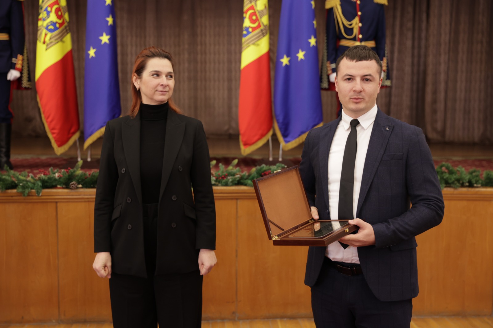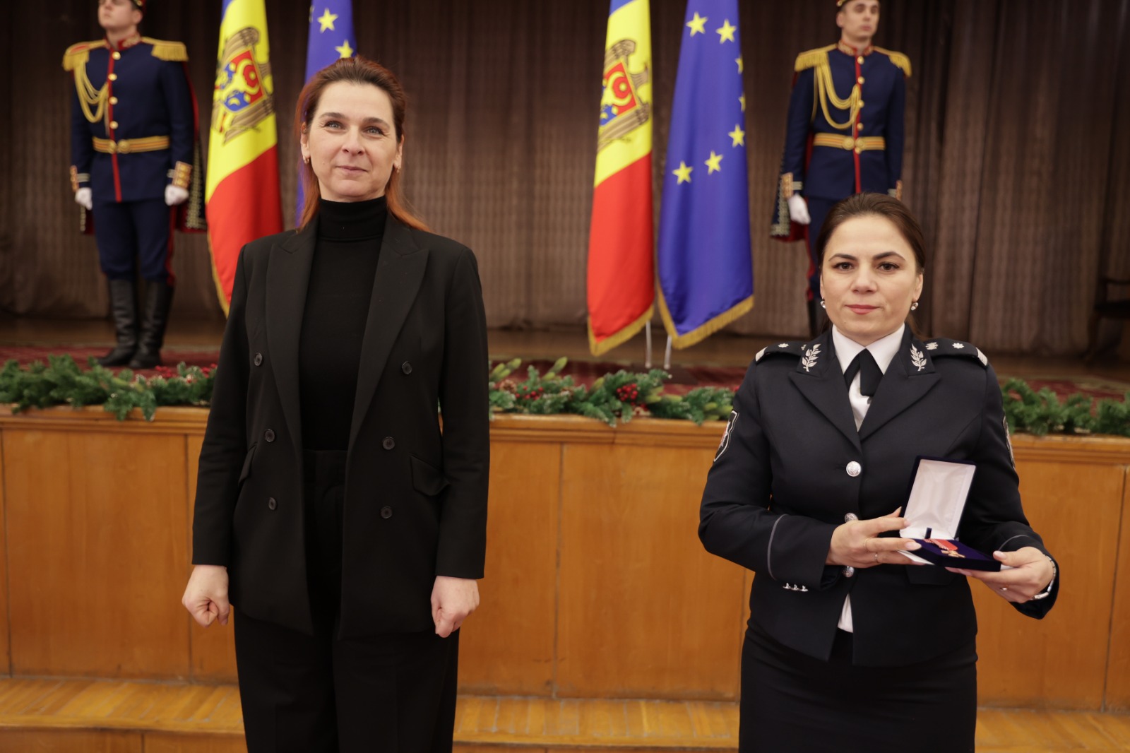 20 Decembrie 2022 Astăzi, în cadrul ceremoniei dedicate celor 32 de ani de la crearea Poliției Naționale, în semn de recunoștință pentru rezultatele obținute în activitatea de serviciu, merite deosebite în apărarea drepturilor și libertăților fundamentale ale cetățenilor, precum și pentru profesionalismul manifestat la asigurarea legalității și ordinii de drept, mai mulți polițiști și angajați ai MAI au fost decorați cu distincții și medalii. În cadrul evenimentului, Ministrul Ana Revenco a felicitat colegii și le-a mulțumit pentru efortul, munca depusă și sarcinile duble pe care le-au îndeplinit pe parcursul anului, precum și pentru dedicația și profesionalismul de care dau dovadă în combaterea infracțiunilor și asigurarea unui climat de siguranță, atât pentru cetățenii țării noastre, cât și pentru cetățenii străini care se află în Republica Moldova. La mulți ani celor care poartă cuvintele onoare și curaj întipărite în suflet! La mulți ani celor care rostesc cu mândrie: „Servesc Republica Moldova”! La mulți ani celor care pun țara mai presus de viața lor!
