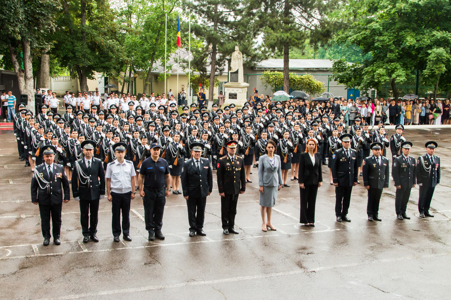 La finalul ceremoniei, studenţii au trecut cu pas de defilare, onorând oaspeţii instituţiei şi ofiţerii trecuţi în rezervă.