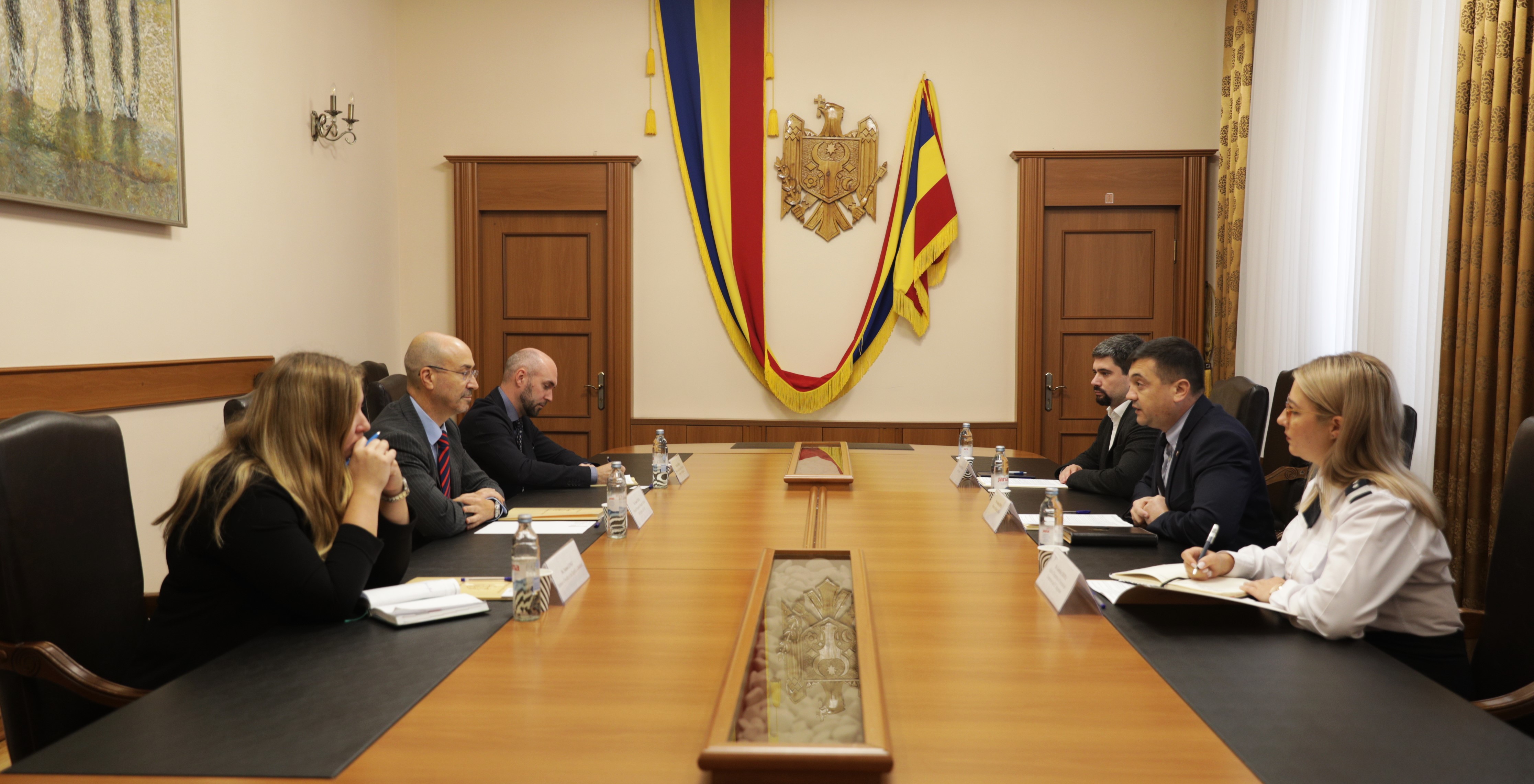 Adrian Efros a mulțumit oaspeților pentru suportul oferit în monitorizarea și evaluarea Programului național de implementare a Rezoluției 1325 a Consiliului de Securitate al ONU privind femeile, pacea și securitatea, cît și pentru expertiza oferită pentru elaborarea metodologiei și listei de indicatori care să măsoare egalitatea instituțională de gen în instituțiile de securitate și apărare din Moldova, dar și pentru analiza funcțională a planificării strategice în cadrul MAI și a instituțiilor subordonate.
