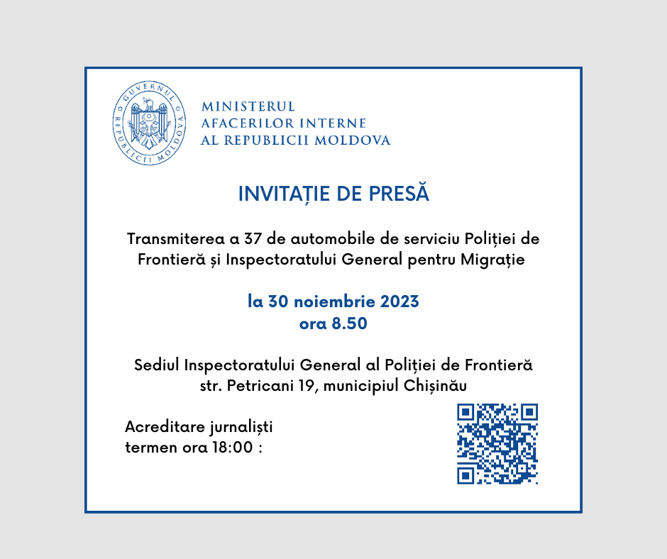 INVITAȚIE DE PRESĂ – Transmiterea a 37 de automobile de serviciu Poliției de Frontieră și Inspectoratului General pentru Migrație