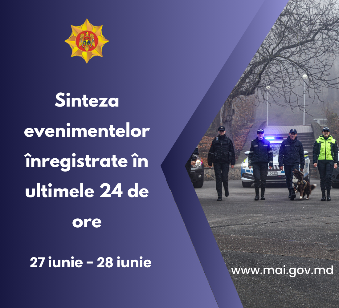 28 Iunie 2024 Sinteza evenimentelor Ministerului Afacerilor Interne înregistrate în ultimele 24 de ore. Pentru a afla situația operativă din domeniul afacerilor interne, accesați:sinteza 27 - 28.06.2024.pdf