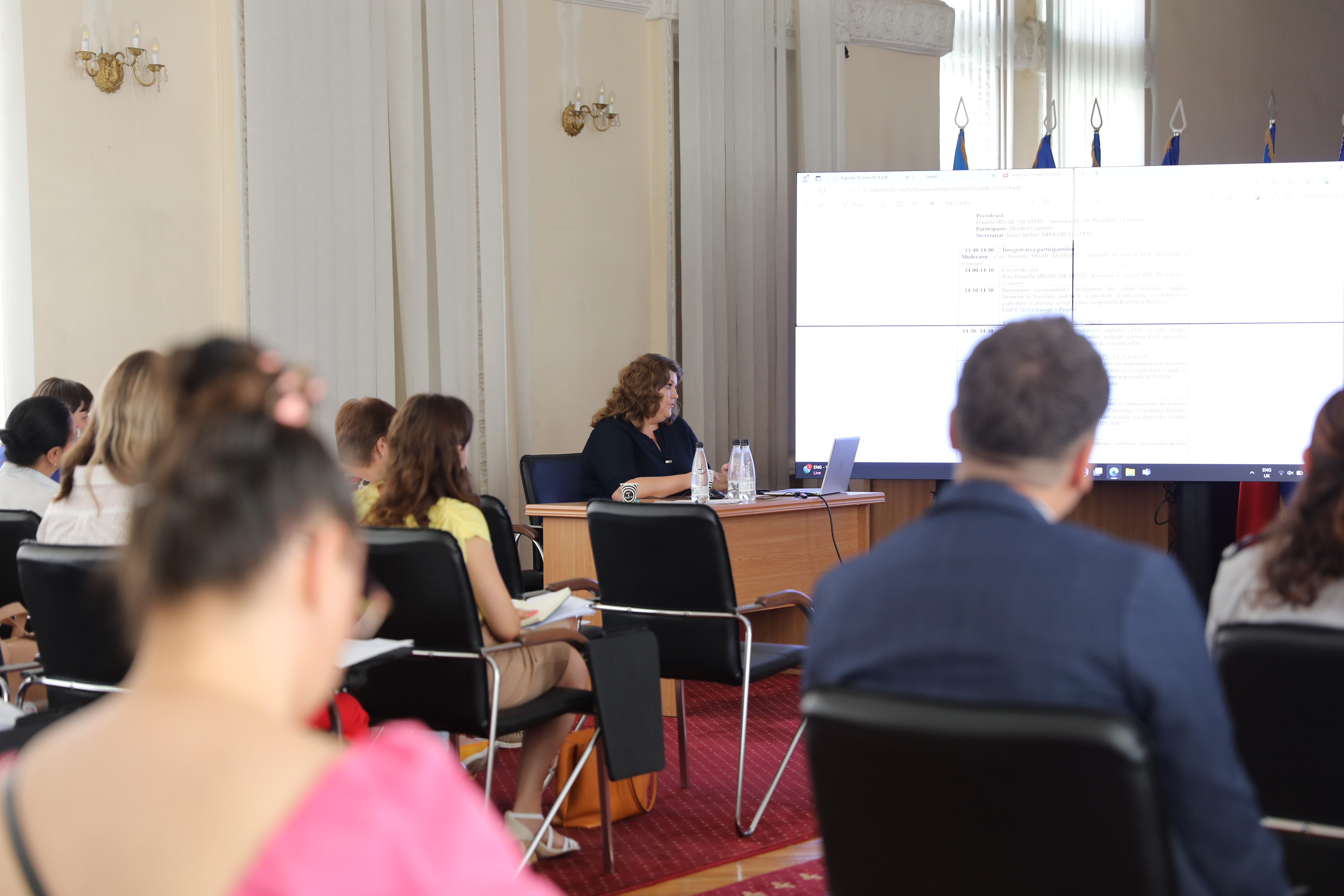 19 iulie 2024, Chișinău - Comisia specializată a Consiliului Național pentru Drepturile Omului, coordonată de către Ministerul Afacerilor Interne (MAI), responsabilă de monitorizarea implementării Convenției Consiliului Europei privind protecția copiilor împotriva exploatării sexuale și a abuzurilor sexuale (Convenția Lanzarote) s-a întrunit într-o nouă ședință de lucru, prezidată de Secretara de Stat Daniella Misail-Nichitin.