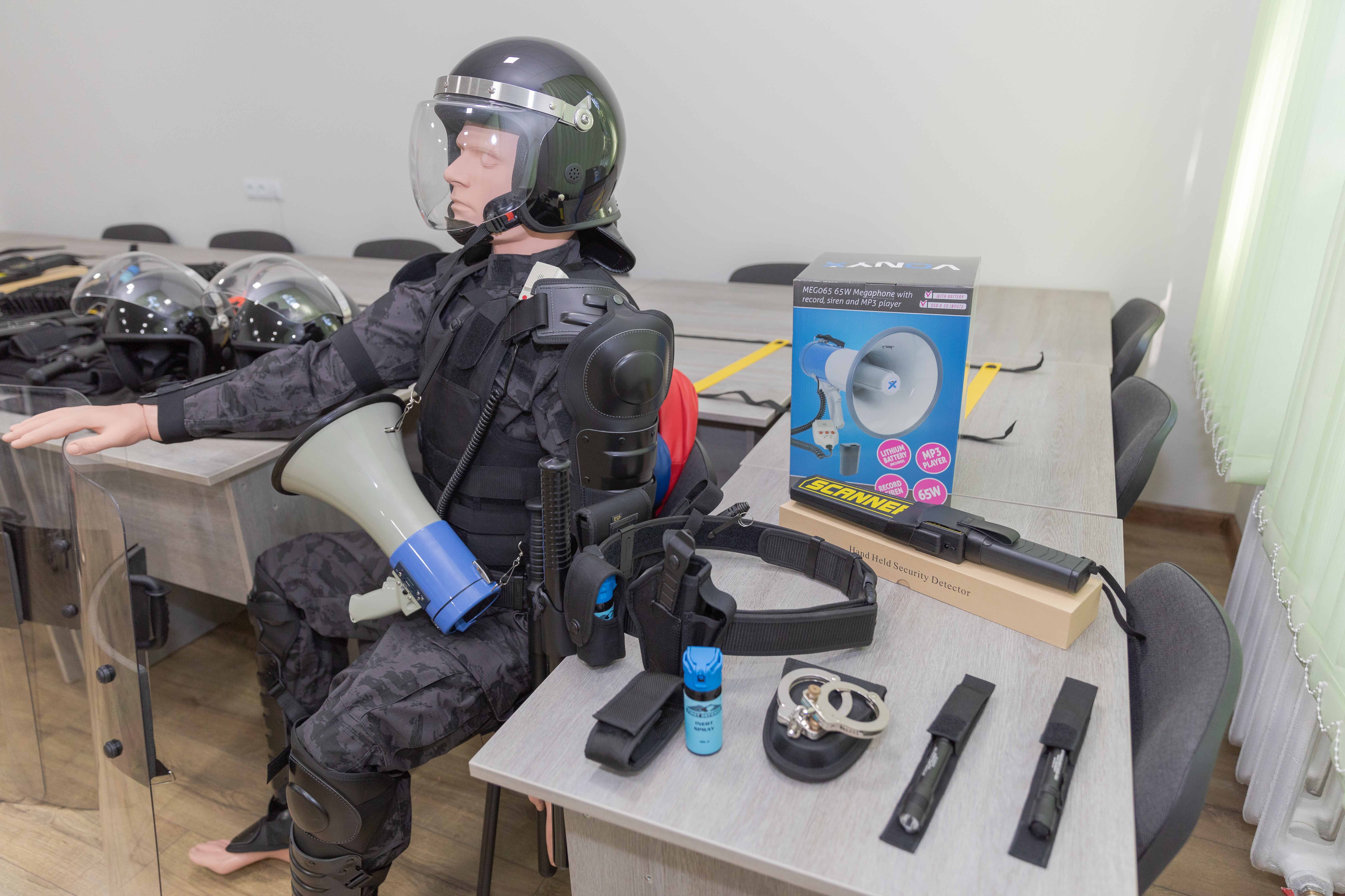 Lotul conține mai multe tipuri de echipamente individuale și de grup care vor fi utilizate la lecțiile practice din cadrul CIPAL. Este vorba despre măști de protecție împotriva loviturilor din timpul antrenamentelor, genunchiere, cotiere, veste anti-înjunghiere, detectoare de metale, bastoane pentru dirijarea traficului rutier, centuri tactice, manechine pentru antrenamente de salvare, etc.