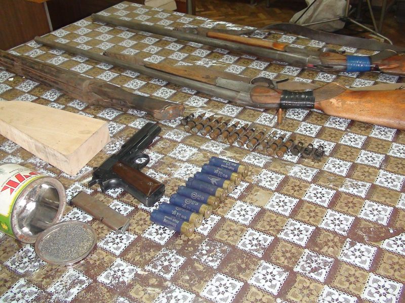 Ca urmare a unei informaţii operative, poliţiştii au descins, în localitatea menţionată, iar la domiciliul unui bărbat, de 53 de ani, au depistat un pistol de model "RESK Gernement", două arme de vânătoare de modelele IJ-18 şi IJ-17 , o armă de vânătoare cu ţeava retezată, cartuşe de vânătoare, pulbere şi alte muniţii.