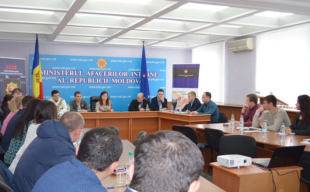 Stagiul a  fost moderat de către șeful SPIA, colonelul de poliție Vitalie Moisei, care totodată i-a avut drept invitați pe Înalt consilierul Uniunii Europene în domeniul Afacerilor Interne, chestorul Eugen Corciu, Înalt consilierul Uniunii Europene în domeniul reformei poliției, chestorul Marian Tutilescu și reprezentanta Procuraturii Generale, Mirandolina Sușițcaia. Aceștia le-au vorbit tinerilor angajați despre valorile organizaționale, dezvoltarea și integritatea profesională, fenomenul corupției și metodele de prevenire și combatere a acestuia.