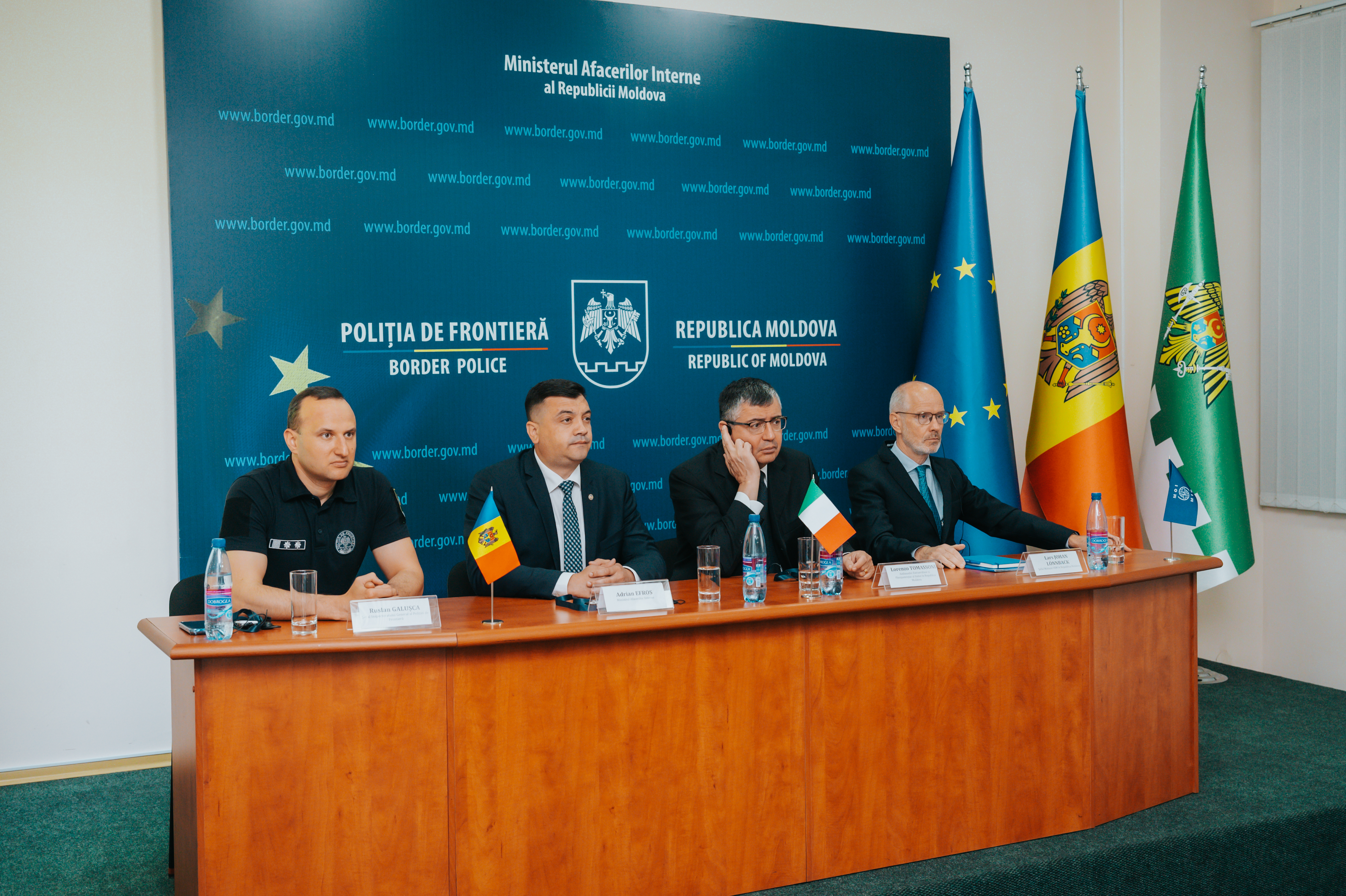 La evenimentul oficial, desfășurat la sediul Poliției de Frontieră, au participat Ministrul Afacerilor Interne, Adrian Efros, șeful Poliției de Frontieră, Ruslan Galușca, Ambasadorul Republicii Italia în Republica Moldova, Lorenzo Tomassoni, și șeful Misiunii OIM Moldova, Lars Lonnback.