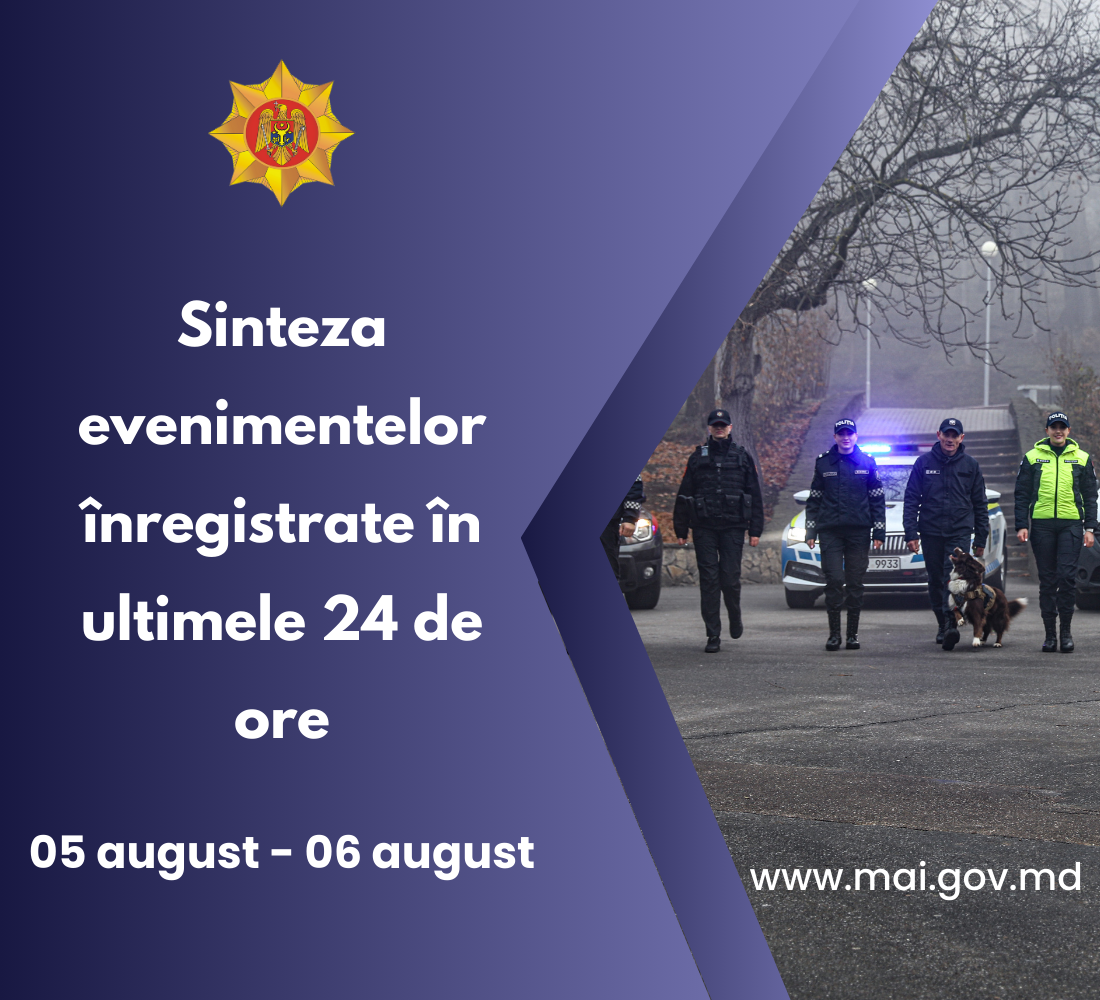 6 August 2024 Sinteza evenimentelor Ministerului Afacerilor Interne înregistrate în ultimele 24 de ore. Pentru a afla situația operativă din domeniul afacerilor interne, accesați: Sinteza 05 - 06.08.2024.pdf