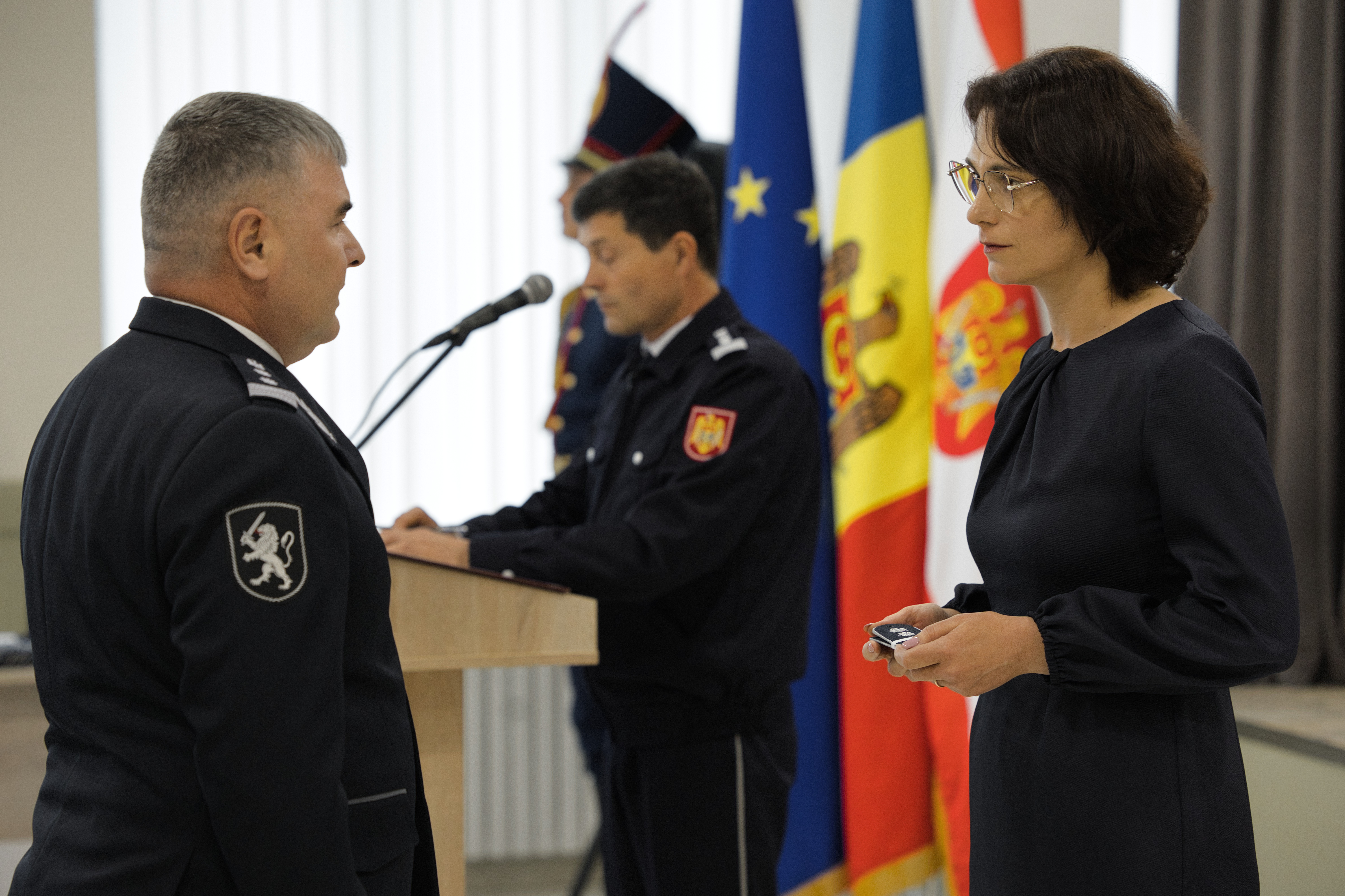 26 Mai 2025 Zi de zi, angajații sistemului afacerilor interne sunt cei care asigură liniștea și siguranța comunităților noastre. Ei veghează la menținerea ordinii publice, intervin rapid în situații de urgență și gestionează cu profesionalism provocările pentru a proteja viața și bunurile cetățenilor. Prin eforturile lor constante și implicarea necondiționată, contribuie la consolidarea unui stat de drept și la respectarea valorilor democratice ale Republicii Moldova. Pentru meritele deosebite demonstrate în exercitarea atribuțiilor de serviciu, 54 de angajați ai Ministerului Afacerilor Interne au fost avansați astăzi în gradul special următor. „Obținerea unui grad superior reprezintă atât recunoașterea efortului depus, cât și un îndemn de a continua cu aceeași determinare; este, totodată, o responsabilitate de a deveni un exemplu pentru colegi, de a ghida și inspira echipa din care faceți parte. Această avansare demonstrează că seriozitatea, loialitatea și implicarea sunt apreciate și răsplătite. Cei care se află astăzi în fața noastră au dovedit că pot răspunde provocărilor cu profesionalism și echilibru și că își respectă cu adevărat angajamentul față de siguranța cetățenilor și ordinea publică”, a declarat Ministra Afacerilor Interne, Daniella Misail-Nichitin.